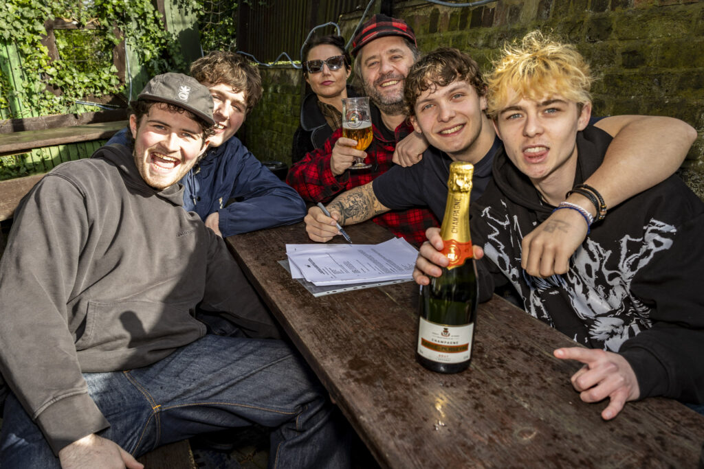 Signing the deal was a proper pinch-me moment. “It’s been a long time in the works, but actually going down to the big smoke to sign in person was pretty special,” Louis tells us. “We’ve got a very special circle around us now and there were some crazy people there to witness it. It was genuinely surreal not long ago we were just playing pubs for our mum and dad, haha. The only word for it is mental… in the best way possible.”